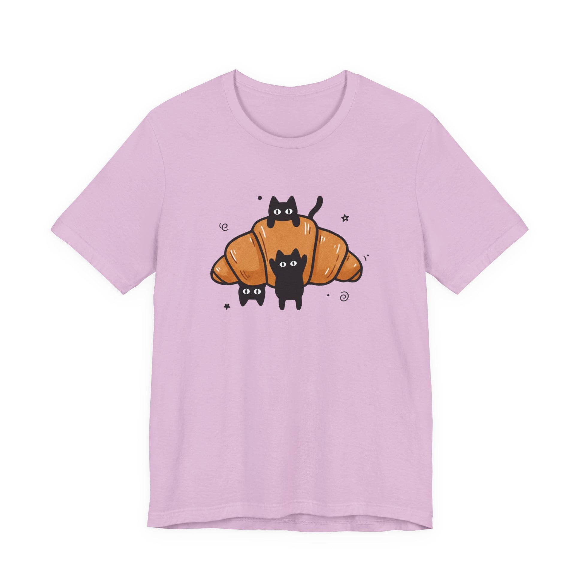 Indulge in the perfect pairing of feline friends and French pastries with this delightful cats and croissants t-shirt. Featuring an adorable minimalist design of playful black cats perched on and around a golden-brown croissant, this tee captures the cozy charm of cafe culture and cat companionship in one irresistibly cute design.