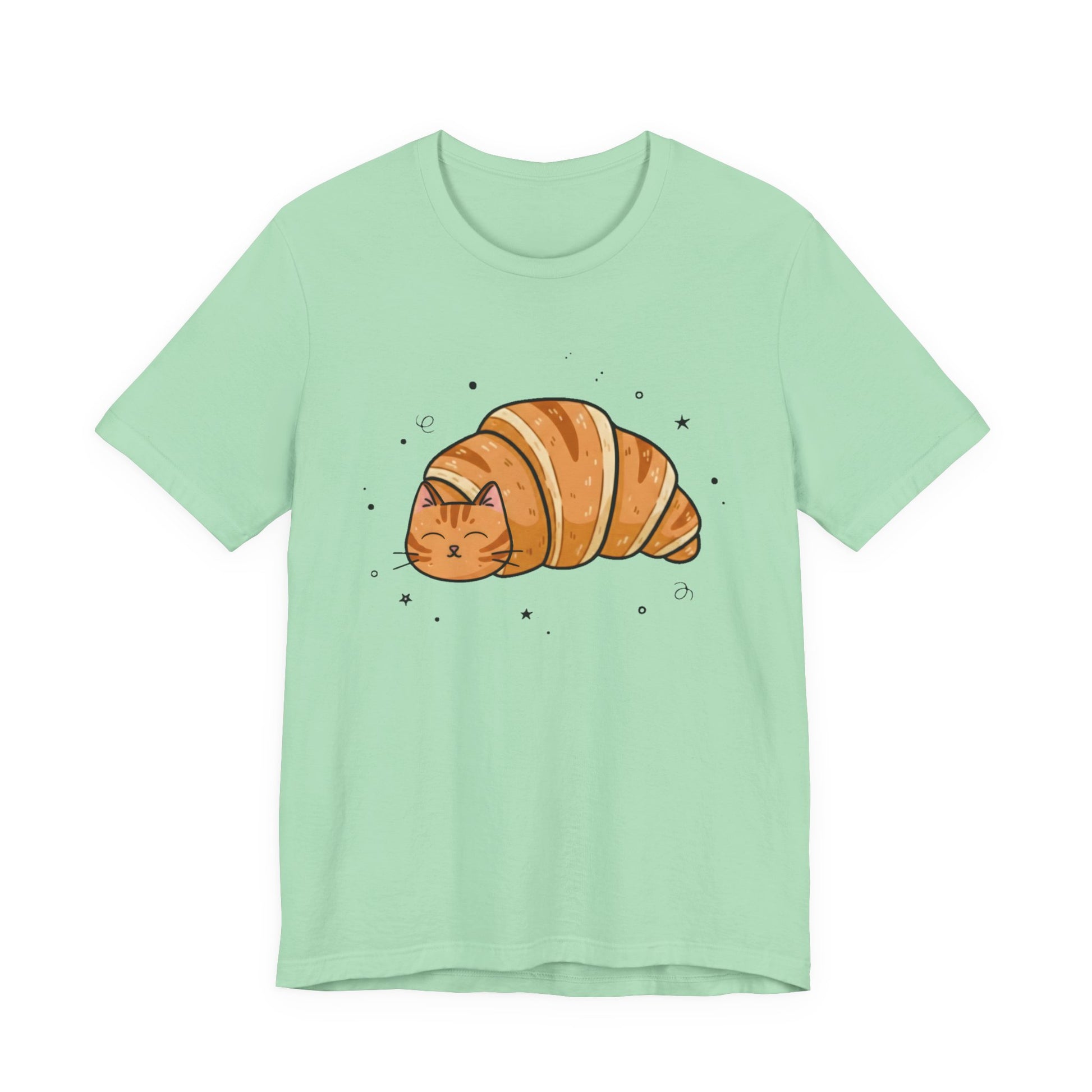 Cat Croissant T-Shirt - Cute Soft Cotton Tee for Cat and Pastry Lovers
